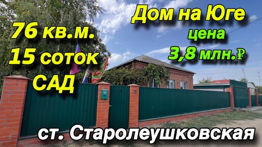 ДОМ на ЮГЕ/ ст. СТАРОЛЕУШКОВСКАЯ/ 76 кв.м. 15 соток, САД