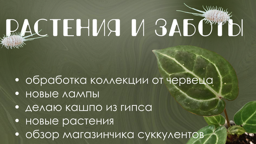 Растения и заботы: Обработка от вредителей, новые лампы, магазин суккулентов и кашпо из гипса.