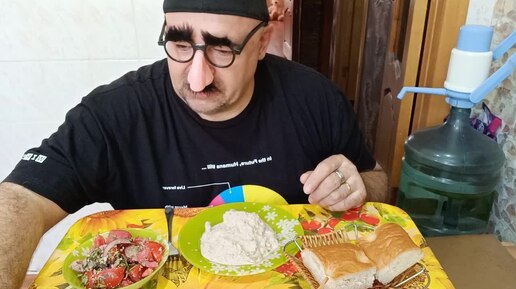 Мукбанг. Сациви, имеретинский салат и лаваш. Гость с Кавказа.