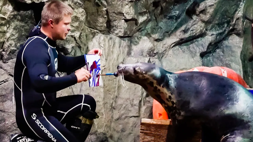 Хороши во всём: тюлени из Петербургского океанариума рисуют, играют и качают пресс