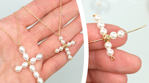 КАК СОБРАТЬ ПОДВЕСКУ КРЕСТИК ИЗ ЖЕМЧУГА СВОИМИ РУКАМИ