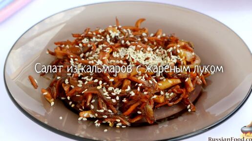 Пикантный салатик оценят любители острых блюд. Салат из кальмаров с жареным луком