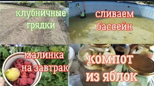 Начали готовить клубничные грядки/Слили бассейн/Яблочный компот на зиму