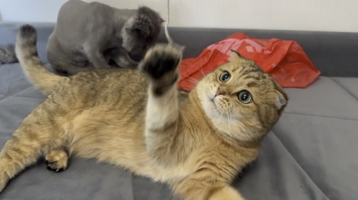 Два кота, две веревочки и пакет. Зачем коту игрушка, если есть веревочка?