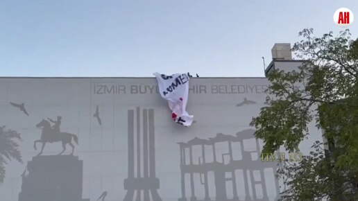 «Янки, убирайтесь!»: Турки вывесили плакат на здании муниципалитета в Измире напротив американского военного корабля.