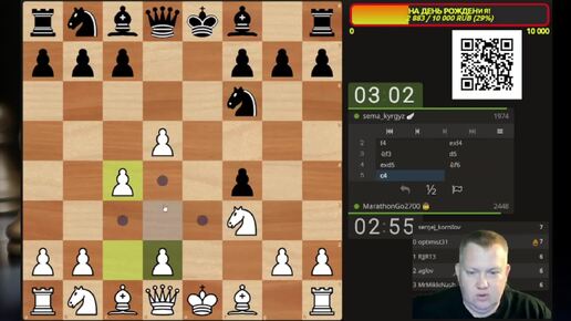 Королевский гамбит: зеваю в дебюте, а соперник прощает. Шахматы
