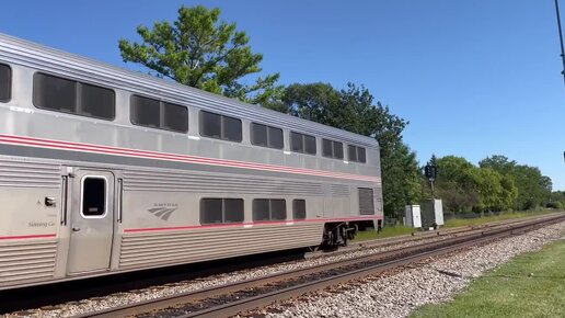 Двухэтажный Поезд Амтрак с приветливым машинистом
