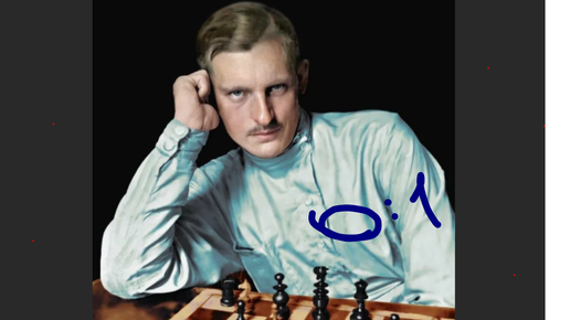 Совсем еще "зеленый" Алехин показывает кто в доме хозяин. Бьет черным цветом Бориса Верлинского на турнире в Петербурге, 1909. Испанка, 0-1