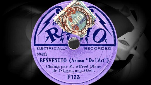 BENVENUTO (Arioso "De l'Art") - Chanté par M. Alfred Blanc, de l'Opera, acc. Orch. (1931-32)