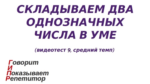 ГИПР - Складываем два однозначных числа в уме, видеотест 9, средний темп