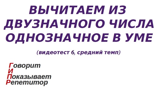 ГИПР - вычитаем из двузначного числа однозначное в уме, видеотест 6, средний темп