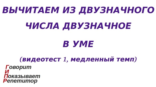 ГИПР - Вычитаем из двузначного числа двузначное в уме, видеотест 1, медленный темп