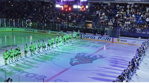 Весь стадион почтил память ярославского "Локомотива". 13 лет момента авиакатастрофы. Яркое шоу перед началом матча, выход команд на лёд