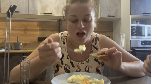 Легкий ужин/Мукбанг/Омлет и овощной салат/ Муж тоже теперь худеет😂:/ Что буду готовить завтра вот в чем вопрос каждой хозяйки/