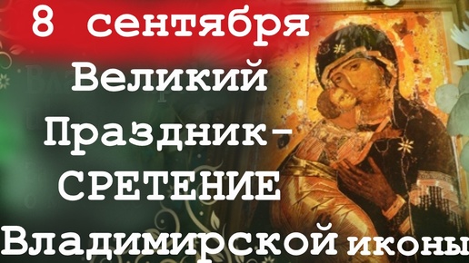 8 сентября Великий Праздник-СРЕТЕНИЕ Владимирской иконы Богородицы