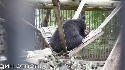 У гималайских медвежат получился сытный завтрак с перерывом на сон.