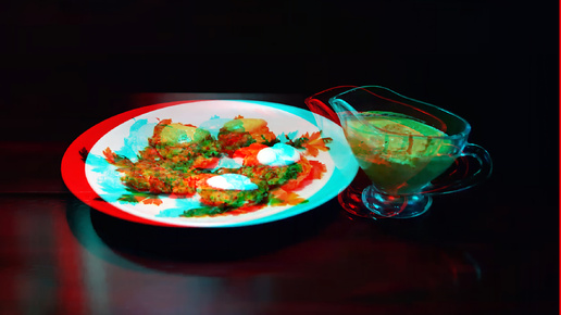 3D stereo red-cyan Котлеты из кабачков с грибами или вегетарианские котлеты