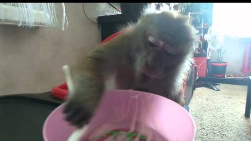 и снова завтрак...йогурт! ( яванская макака Маруся)