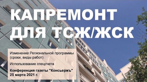 Капремонт для ТСЖ: конференция газеты «Консьержъ», 2021 год. "Общий котел" и спецсчет. Теория и опыт.
