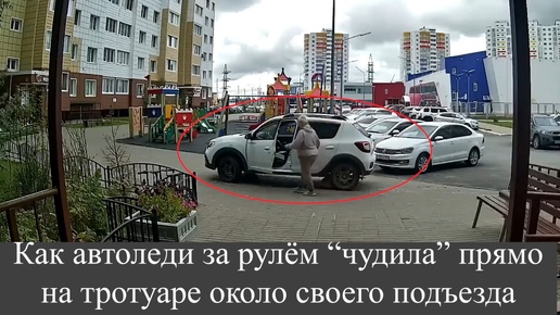 Как автоледи за рулём “чудила” прямо на тротуаре около своего подъезда