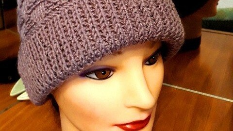 Рельефный узор- ажурные треугольники для легкой демисезонной женской шапки-Аметистовая роса