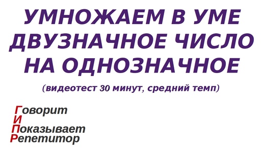 ГИПР - Умножаем двузначное число на однозначное, видеотест 30 мин, средний темп