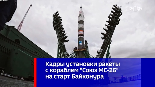 Кадры установки ракеты с кораблем "Союз МС-26" на старт Байконура