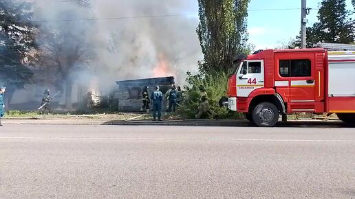 г.Енакиево пос.Веровка утро началось с пожара, горит дом а рядом почта и магазин.