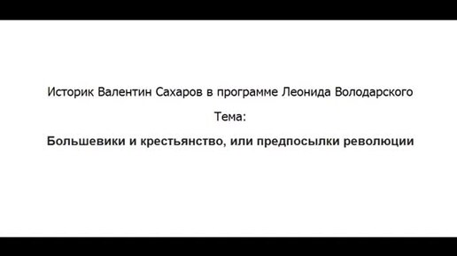 Большевики и крестьянство, или предпосылки революции. Валентин Сахаров