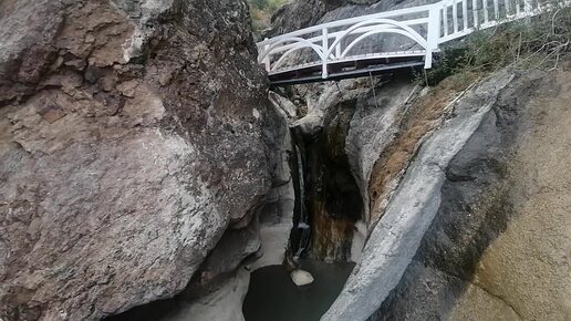 Первый каскад Арпатских водопадов возле "Чаши любви" в урочище Панагия в Крыму.