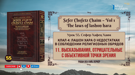 𝟱𝟱. Сефер Хафец Хаим | Высказывания, отрицательные с объективной точки зрения