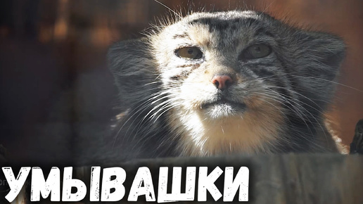 Манул Намика умывается в жаркий день. Ленинградский зоопарк