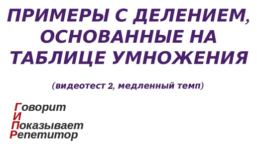 ГИПР - Примеры с делением, основанные на таблице умножения, видеотест 2, медленный темп