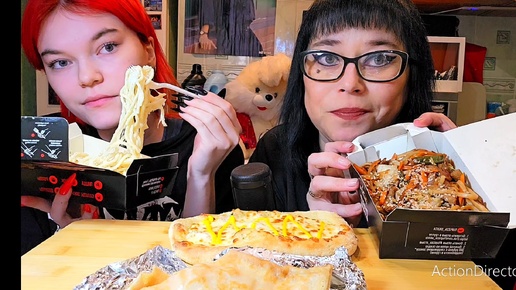 Мукбанг | Паста Карбонара, Вок с курицей,Блинчик с ветчиной и сыром, Пицца с цыпленком. Такие голодные, что ни че не съели 😆. Обжорчик
