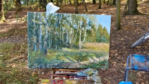 Сентябрьское утро. Живопись, пейзаж с берёзами