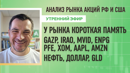 Анализ рынка акций РФ и США/ GAZP, IRAO, MVID, ENPG,PFE, XOM, AAPL, AMZN/ Нефть, Доллар, GLD