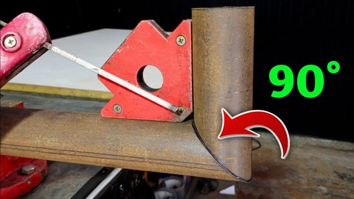 как разрезать круглую трубу под углом 45 градусов на угловой шлифовальной машине __ трюк с соединением под углом 90 градусов