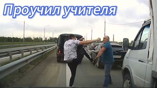 Наглый подрезатель возмонил себя "учителем" и вышел помахать кулаками, но нарвался на бойца и отхватил. Моменты на дороге, снятые на камеру.