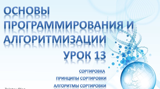 Урок 13 - Основы программирования и алгоритмизации. Задача сортировки. Принципы сортировки. Алгоритмы сортировки. Прямые методы сортировки