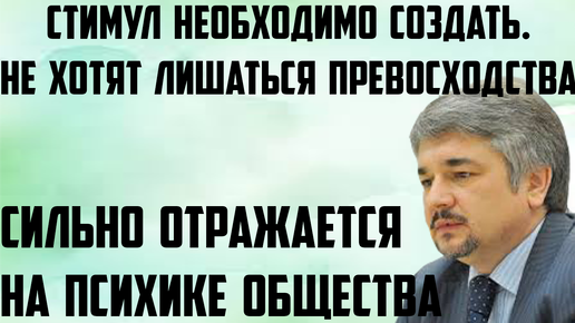 Ищенко: Стимул необходимо создать. Не хотят лишаться превосходства. Отражается на психике общества.