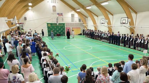 Православная гимназия «Восход». Пение гимназистами гимна России на линейке в День знаний 2024 года