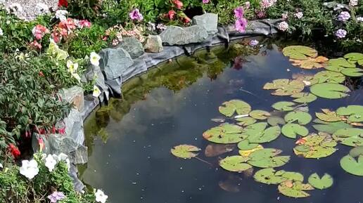 Новая клумба, отличная идея. Пруд и цветы.