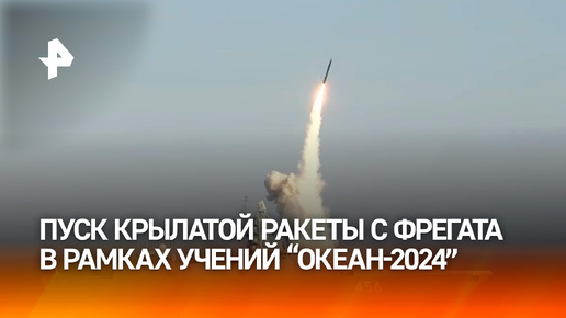 Кадры пуска крылатой ракеты "Калибр" с фрегата "Адмирал Головко" Северного флота в ходе учений "Океан-2024