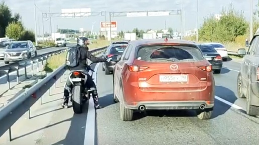 Байкер-ускоритель: мотоциклист помог скорой помощи быстрее преодолеть пробку на Шафировском
