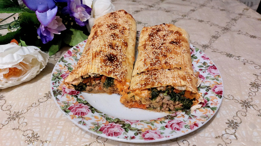 РУЛЕТ ИЗ ЛАВАША С ФАРШЕМ И СЫРОМ ЗАПЕЧЁННЫЙ В ДУХОВКЕ