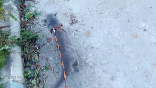 Котик гуляет с хозяйкой.