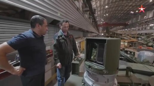 Комплекс активной защиты "Арена-М" на танке Т-72Б3 в сборочном цеху "Уралвагонзавода".