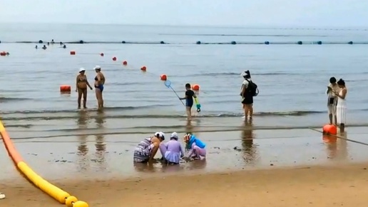 Китай. Прилив и отлив на пляже в Жёлтом море.