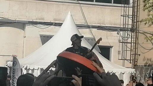 Группа "БеZ <Б>"организовала "катание" на резиновой лодке фанатами своего гитариста на фестивале "ДК Горбунова - легенда русского рока".