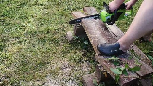 Цепная аккумуляторная пила Greenworks GD40CS18 распаковка, сборка и первый запуск. Пилим старую лестницу.
